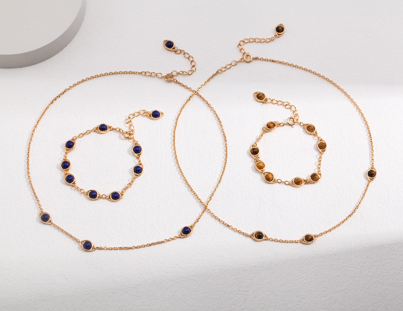 Material: S925 silver/tiger's eye/lapis lazuli. Color: antique gold. Size: chain length is about 16cm + 3cm extension chain, tiger's eye is about 5mm".